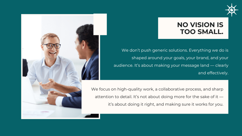 - Creativity With Purpose – We’re not just making things look good; we’re solving problems.